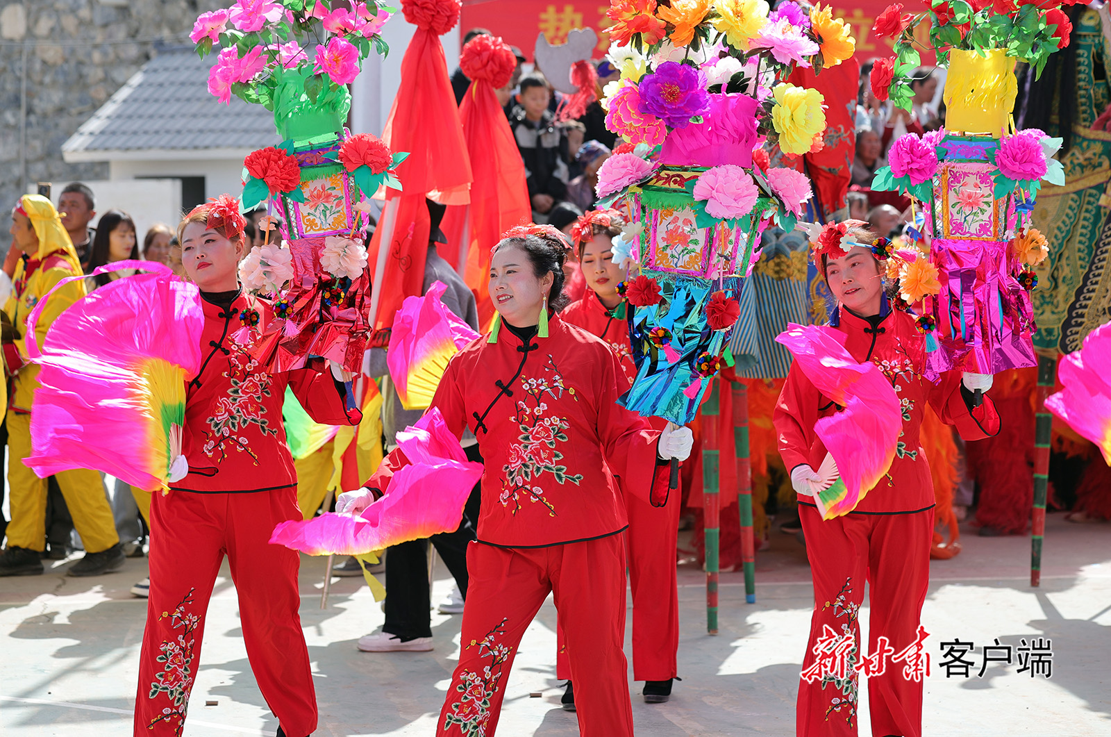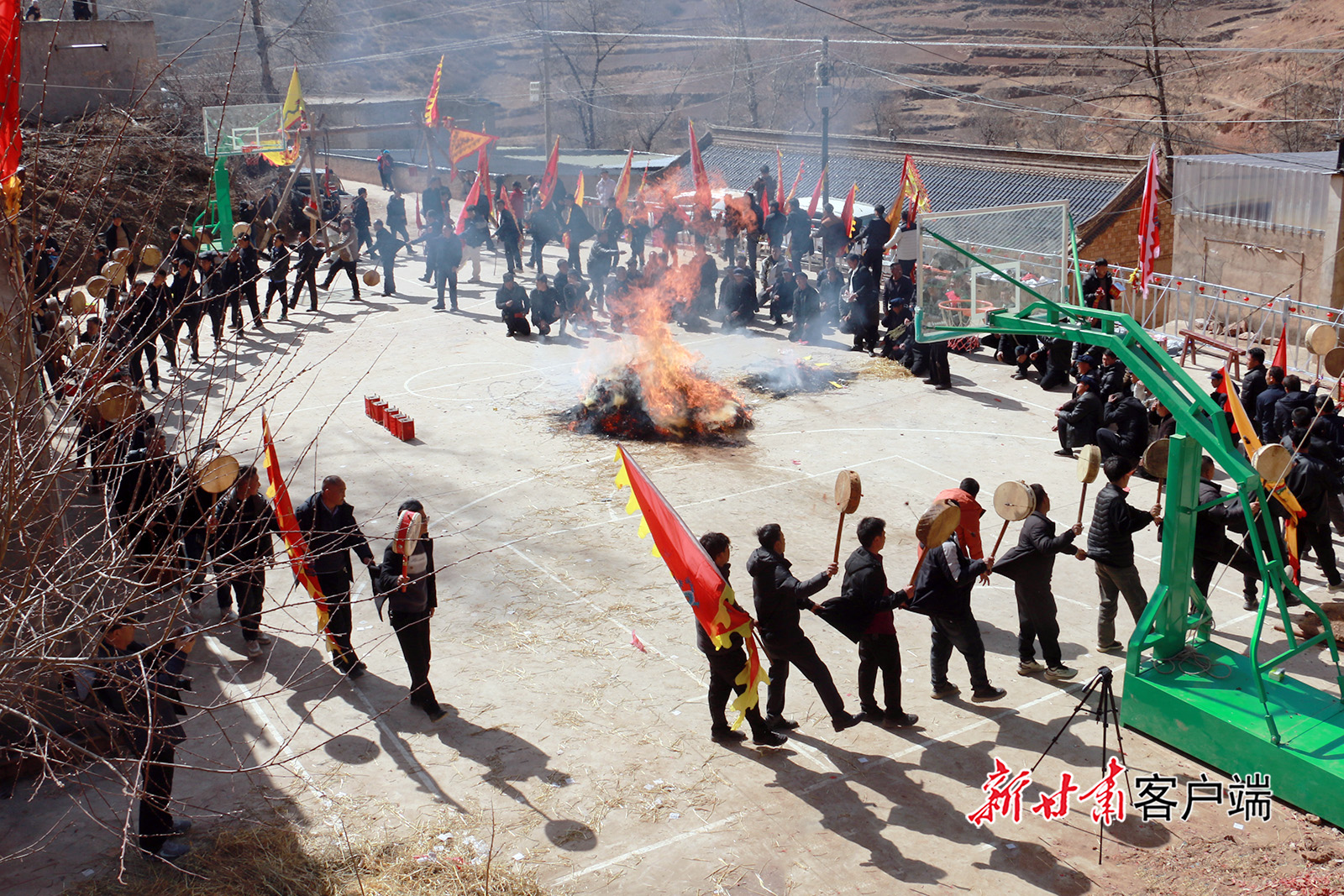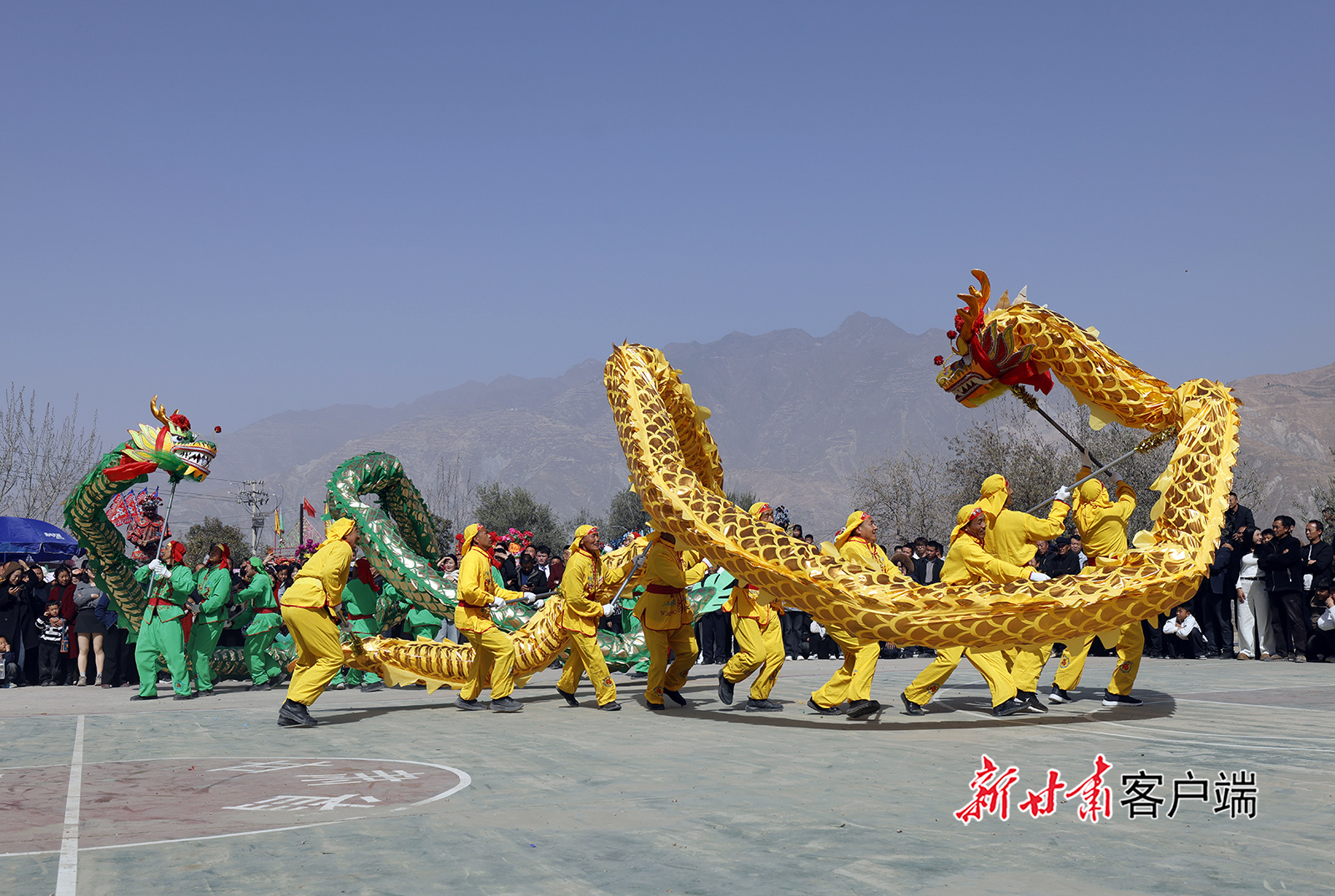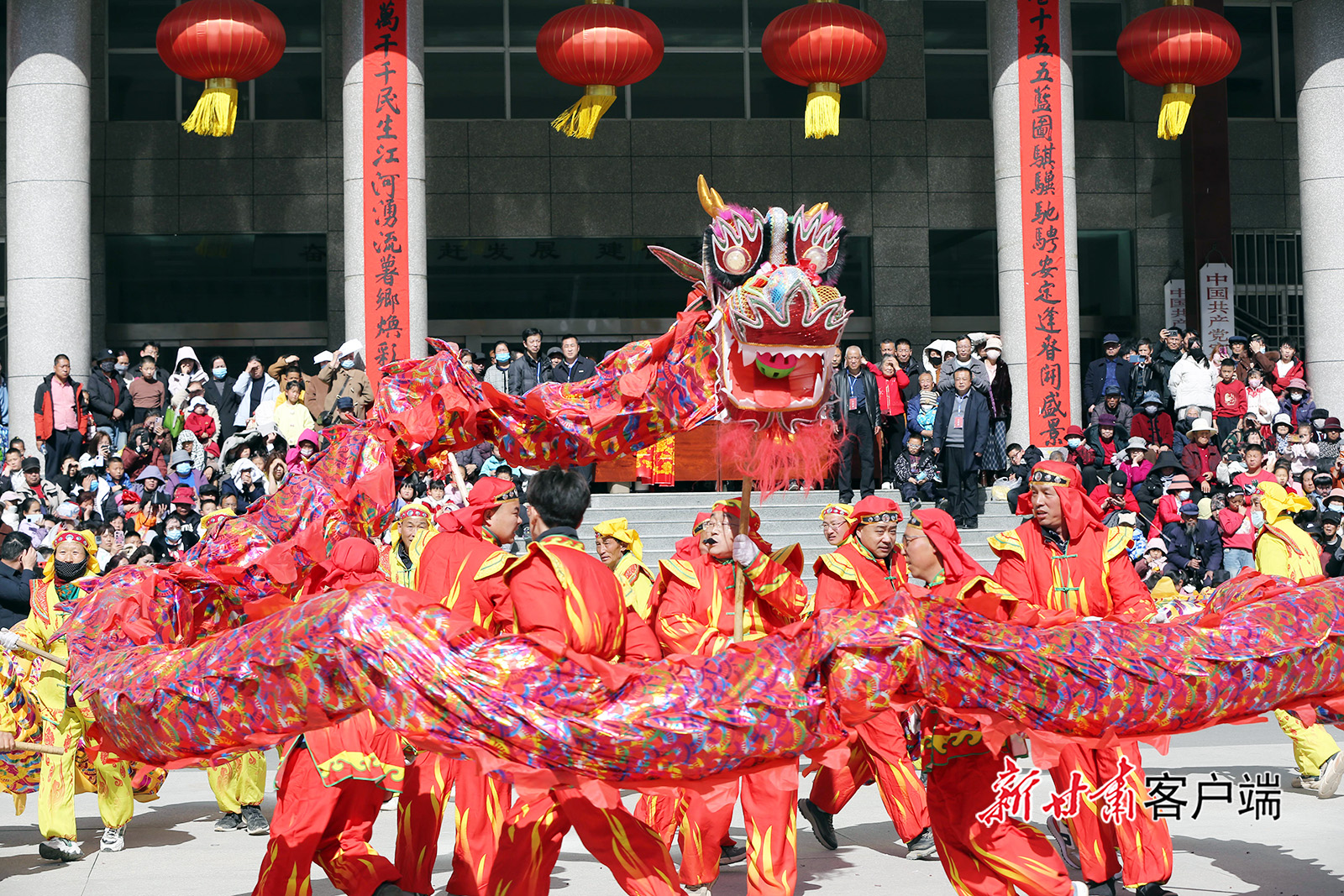 2月24日,慶陽市西峰區(qū)董志鎮(zhèn)莊子洼村、吳莊村社火隊(duì)輪番上陣,與當(dāng)?shù)馗刹柯毠ぜ爸苓吶罕娨黄鸸矐c賀新春。新甘肅·甘肅日?qǐng)?bào)通訊員 盤小美