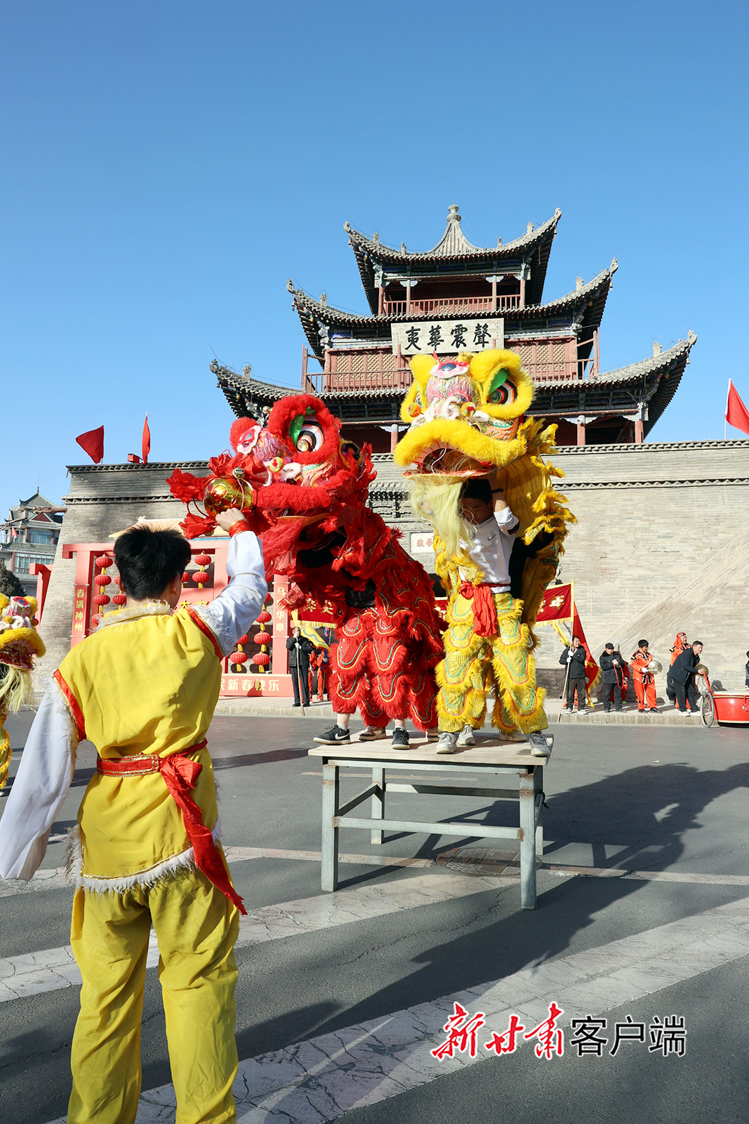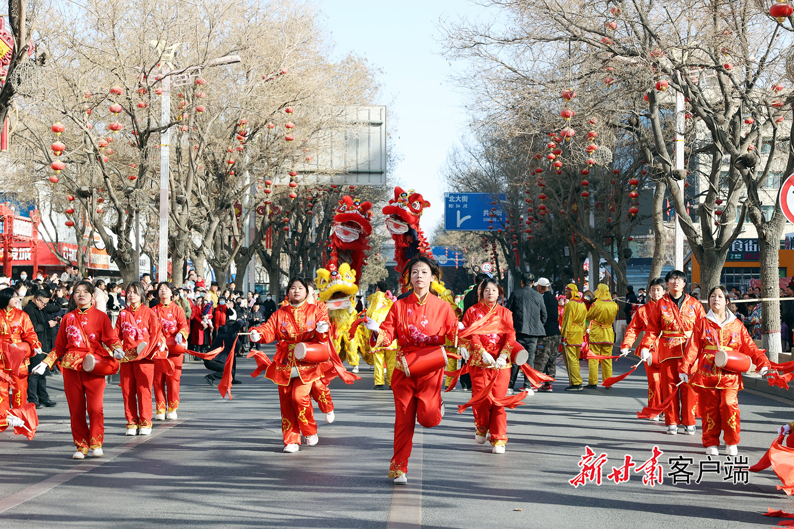 2月24日,酒泉市肅州區(qū)鏵尖鎮(zhèn)、總寨鎮(zhèn)、清水鎮(zhèn)等鄉(xiāng)鎮(zhèn)的社火表演隊(duì),踏著喜慶的鼓點(diǎn)登場(chǎng),為市民獻(xiàn)上新春的視覺盛宴。新甘肅·甘肅日?qǐng)?bào)通訊員 殷小喬