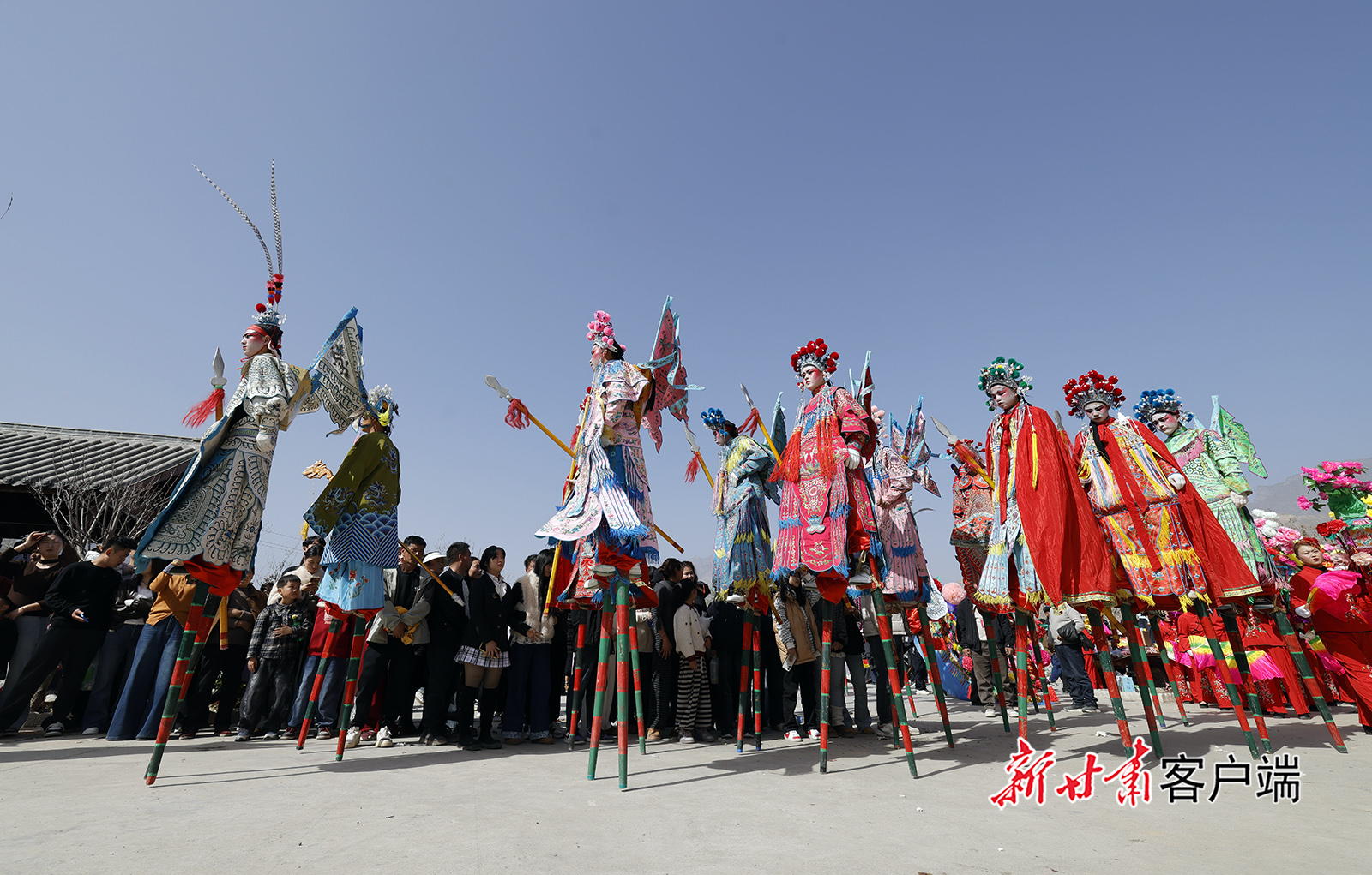 2月25日,在清水縣隴東鎮(zhèn)趙峽村,社火隊(duì)員正在進(jìn)行精彩的踩高蹺表演。新甘肅·甘肅日?qǐng)?bào)通訊員 雷金鋒 趙甲偉