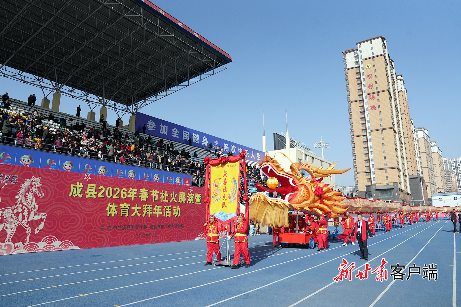 2月24日,農(nóng)歷正月初八,成縣春節(jié)社火展演暨體育大拜年活動(dòng)熱鬧開演。新甘肅·甘肅日?qǐng)?bào)通訊員 祁麗
