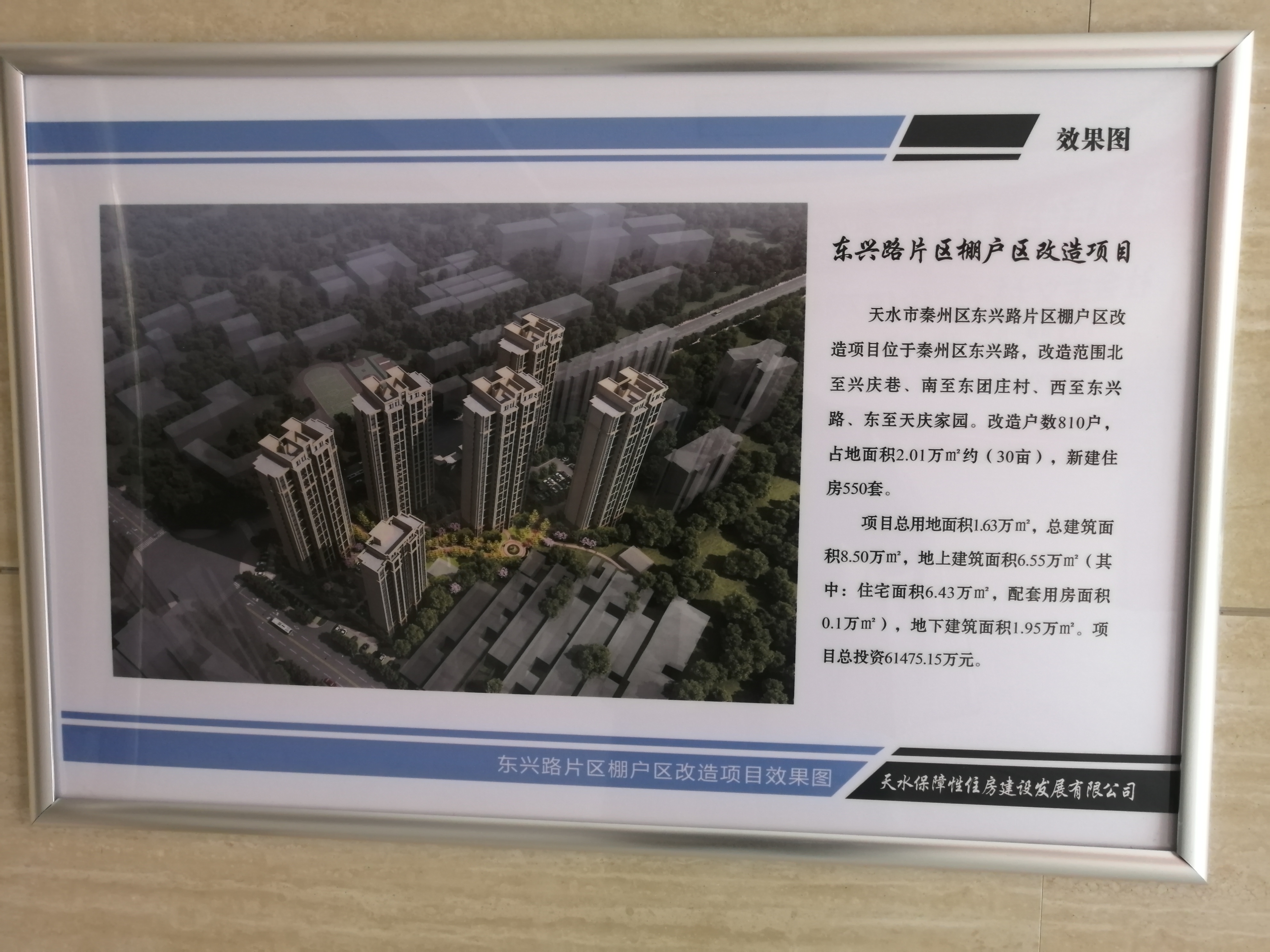 您在《幫您問》欄目的留言已收悉,記者就東興路棚改項目一事向城市更新、住建等相關(guān)部門進行了咨詢,最后得知具體實施該項目棚改工作的是天水保障性住房建設(shè)發(fā)展有限公司,于是記者來到該公司進行采訪,得知,東興路片區(qū)棚改項目的改造范圍北至興慶巷,南至東團莊村,西至東興路,東至天慶家園。改造戶數(shù)810戶,占地面積2.01萬平方米(約30畝),新建住房550套。項目總用地面積1.63萬平方米,總建筑面積8.50萬平方米,地上建筑面積6.55萬平方米(其中住宅面積6.43萬平方米、配套用房面積0.1萬平方米),地下建筑面積1.95萬平方米。