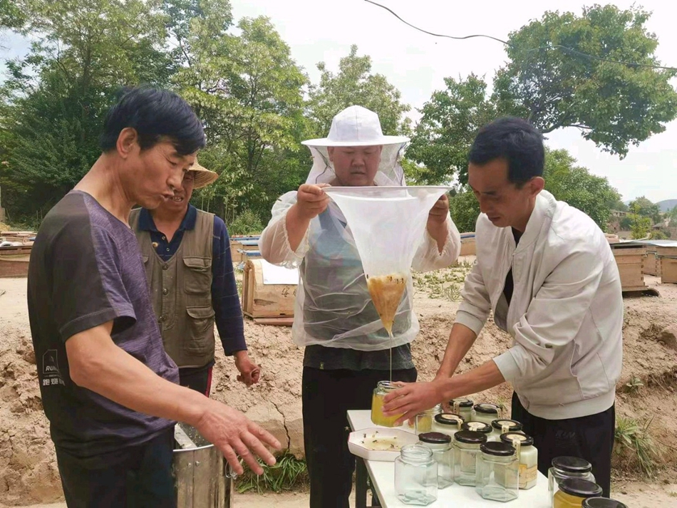端午前夕,海拔1900米的武山縣山丹鎮(zhèn)明山村的一個院落內(nèi),由駐村幫扶隊員、村干部、群眾組成的養(yǎng)蜂團隊正在打蜜。隨著蜂蜜裝瓶密封好貼上商標,在蜜蜂“嗡嗡嗡”聲的喝彩下,明山村今年的“甜蜜”事業(yè)大功告成。 為了發(fā)展壯大村集體經(jīng)濟,讓群眾有致富產(chǎn)業(yè),明山村村干部、駐村幫扶工作隊瞄準了發(fā)展養(yǎng)蜂產(chǎn)業(yè)?!拔覀兡壳梆B(yǎng)了80多箱蜜蜂,主要目的就是強村富民,帶動明山村群眾增加收入,提升鄉(xiāng)村振興能力?!泵魃酱羼v村幫扶工作隊第一書記張芳明說。