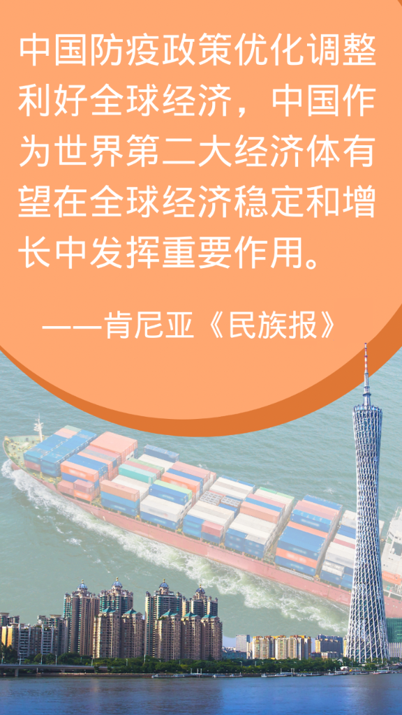 肯尼亞《民族報(bào)》報(bào)道認(rèn)為,中國(guó)防疫政策優(yōu)化調(diào)整利好全球經(jīng)濟(jì),中國(guó)作為世界第二大經(jīng)濟(jì)體有望在全球經(jīng)濟(jì)穩(wěn)定和增長(zhǎng)中發(fā)揮重要作用。