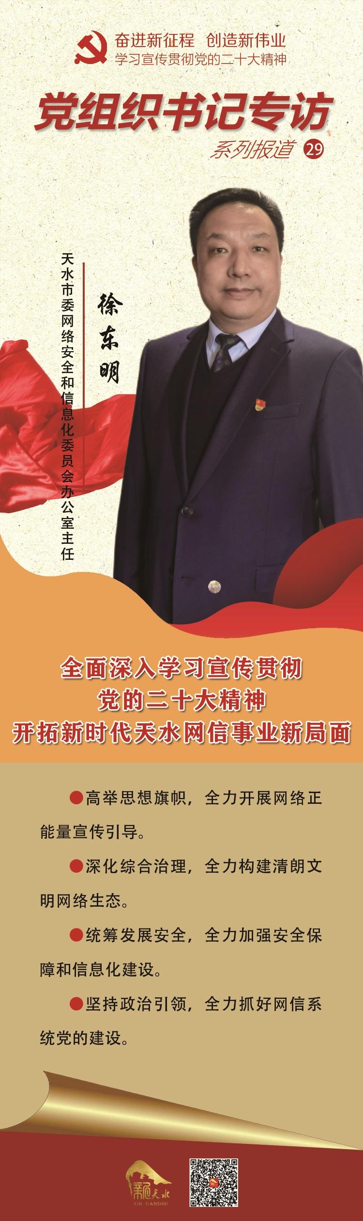 【貫徹二十大精神·黨組織書記專訪?】徐東明:全面深入學(xué)習(xí)宣傳貫徹黨的二十大精神 開拓新時代天水網(wǎng)信事業(yè)新局面