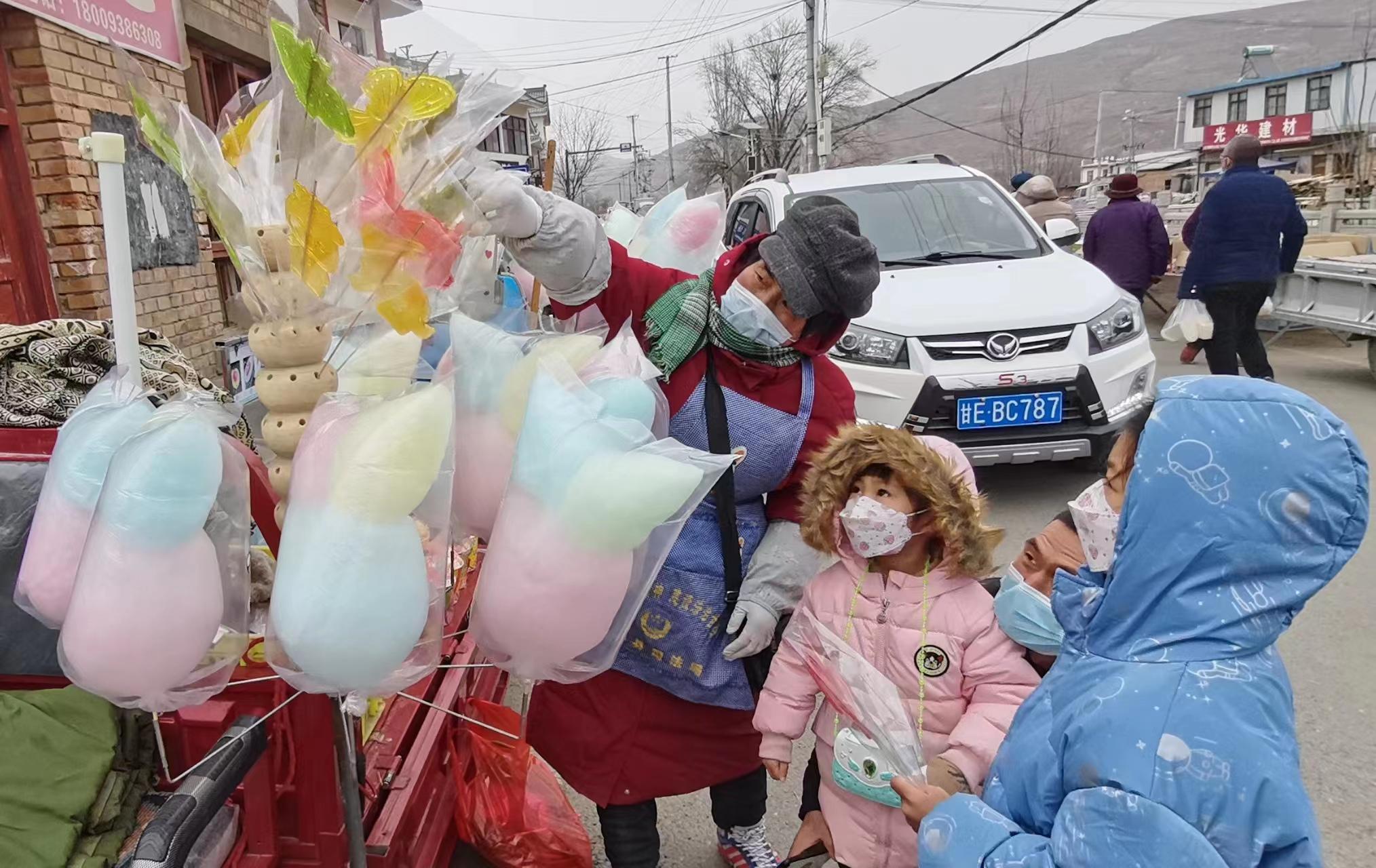 瞧!紅火熱鬧的集市上人如潮涌,各類貨品琳瑯滿目,鞋服、被單、燈籠、福字、對(duì)聯(lián)、干果、大肉、鮮魚(yú)、調(diào)料、各種果蔬等樣樣齊全,還有那冒著熱氣的小籠包、現(xiàn)場(chǎng)制作的棉花糖、剛撈出鍋的炸油餅、熱氣騰騰的香肉面、小朋友手中的年畫(huà)和氣球、人們喜氣洋洋的笑臉……一幅幅喜慶歡鬧的場(chǎng)面,融化了飄飛的雪花,驅(qū)散了凜冬的寒氣。煙火氣濃郁的小年鄉(xiāng)鎮(zhèn)年集,讓飽含著鄉(xiāng)情的濃濃年味撲面而來(lái)。新天水記者 王瑩 攝