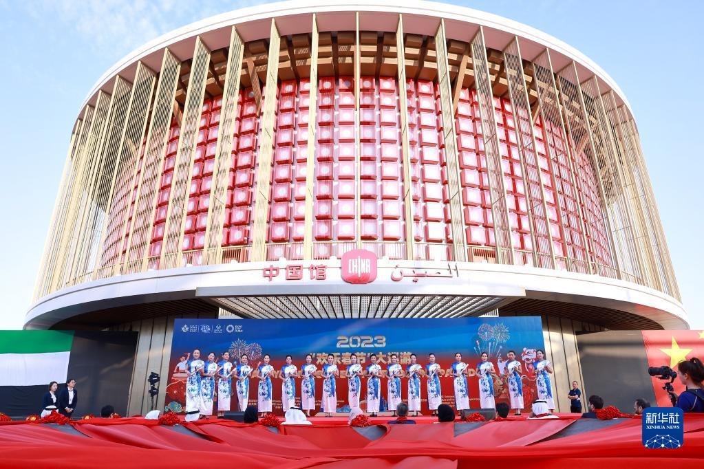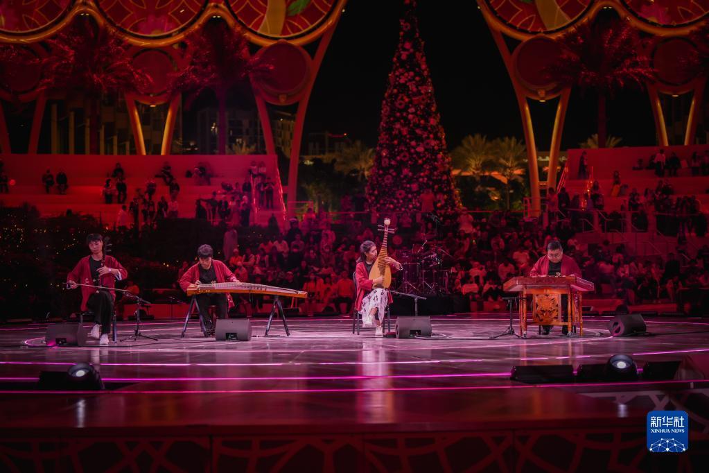 1月14日,在阿聯(lián)酋迪拜世博城,演員在中國館前的舞臺進行文藝表演。新華社發(fā)