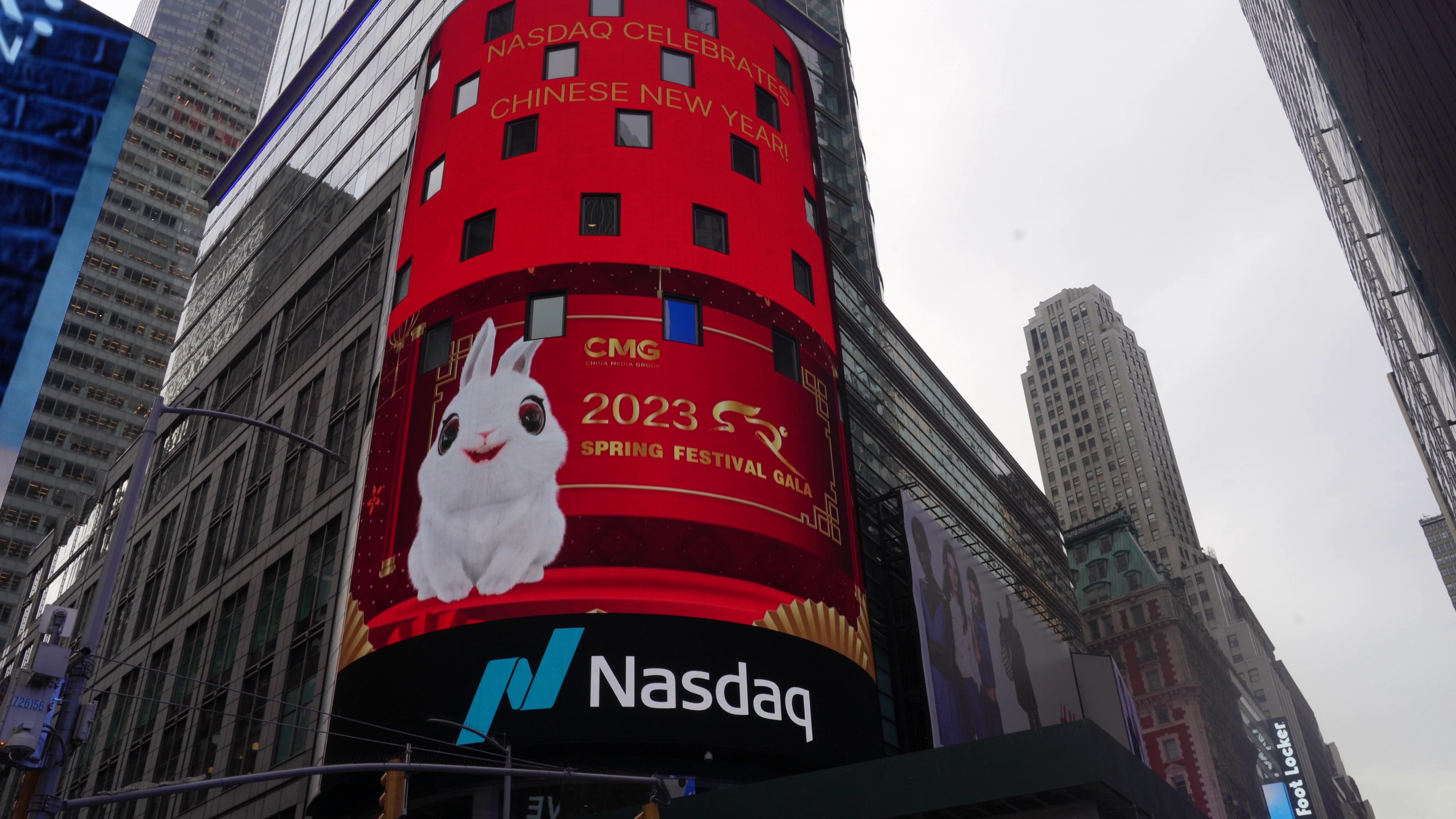 納斯達(dá)克“破五”敲響開市鐘 總臺春晚宣傳片再登時報(bào)廣場