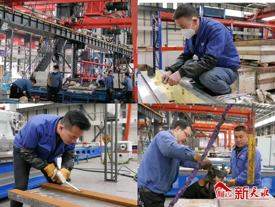 在機械制造公司大件工段,維修電工王師傅和安師傅正在仔細檢查著淬火機的各條線路。安師傅說,淬火機年前就“罷工”了,導致床身的生產(chǎn)進度嚴重滯后。為了讓設備盡早恢復作業(yè),他們天天干到晚上一兩點,從放假到現(xiàn)在,休息了不到兩天時間。再看其他工段磨床、刨床、銑床、車床等機臺的師傅們,也是認真研究圖紙,細心操作機器,全力保障產(chǎn)品加工質(zhì)量,為“搶進度、保訂單”而馬不停蹄忙碌著。
