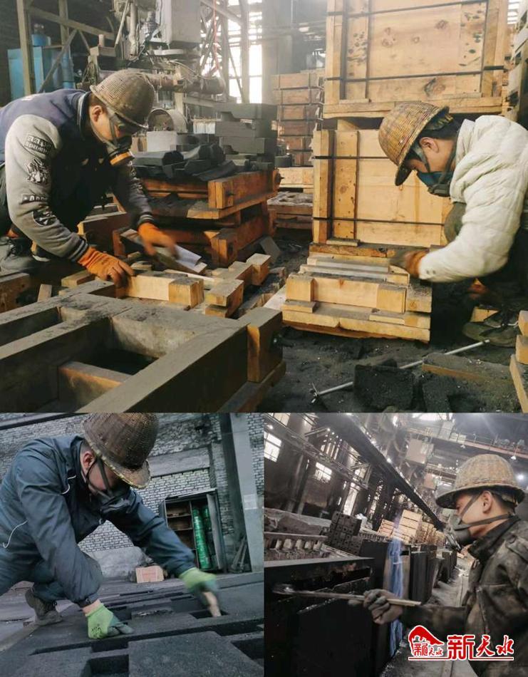 在鑄造公司,師傅們佩戴防護口罩,為趕制砂芯而爭分奪秒。有造型的,有填砂的,有刷涂料的………忙得不亦樂乎。