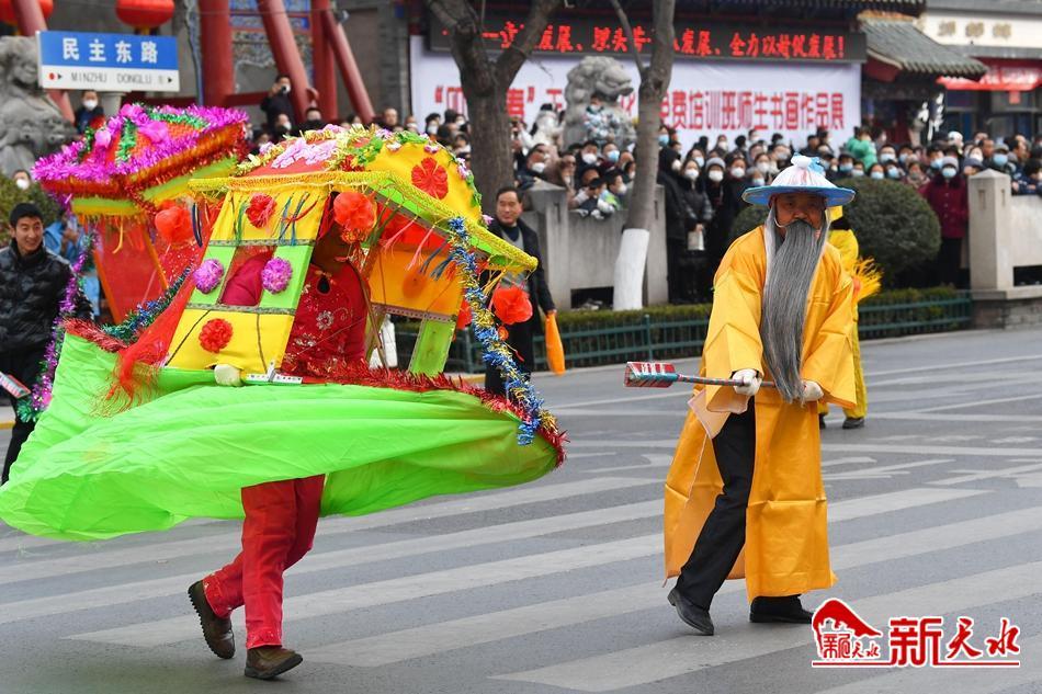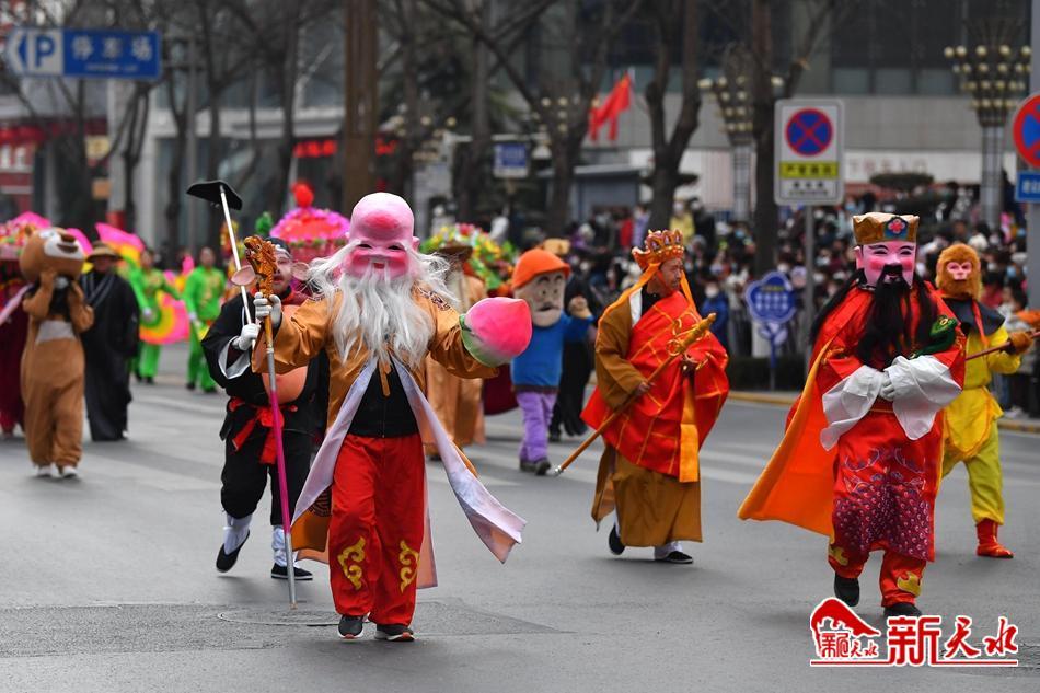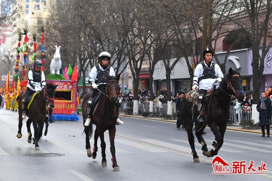“不點(diǎn)花燈月不圓,不耍社火未過年。”2月2日9時(shí),秦州區(qū)“玉兔鬧新春·輝煌新征程”春節(jié)民間社火民俗藝術(shù)匯演活動(dòng)正式拉開序幕。表演隊(duì)伍沿建設(shè)路、民主路進(jìn)行行進(jìn)式表演。演員們身著盛裝,神采奕奕,踏著歡樂喜慶的鼓點(diǎn),為大家送上新年的祝福,帶來了一場極具特色的民俗盛宴。