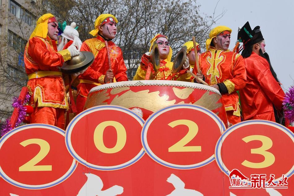 活動現(xiàn)場,放眼望去大紅的燈籠、中國結(jié)掛滿了街頭,喜慶的氛圍撲面而來。上午9時,鼓點(diǎn)激越,鼓聲震天,伴隨著陣陣鑼鼓聲,社火演出正式開始,豐富多彩的節(jié)目輪番上演,為全市人民群眾獻(xiàn)上歡樂喜慶、祥和美好的節(jié)日祝福。