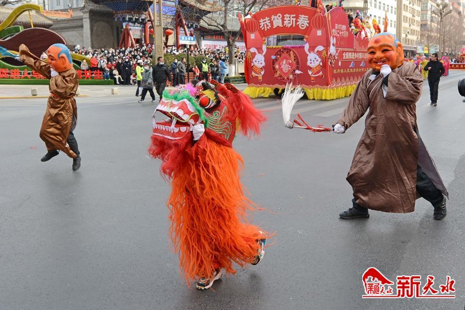 舞龍舞獅劃旱船,敲鑼打鼓迎新年。2月2日,天水市秦州區(qū)“玉兔鬧新春·輝煌新征程”春節(jié)民間社火民俗藝術(shù)匯演活動舉行。