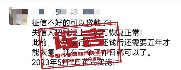 謠言:5月1日起,征信可以修復?