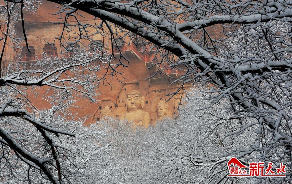 天水最美的雪,落在了麥積崖,仙人湖,也落在了高聳入云的石門山。
