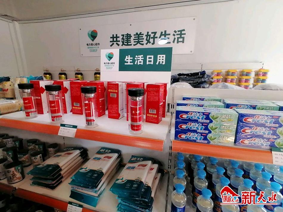 “電力愛心超市”貨架上的食品、日用品、文具、小電器等幾十余種商品,標(biāo)注的不是價(jià)格而是對(duì)應(yīng)積分,村民依據(jù)積分兌換細(xì)則,不用花錢就可以在“電力愛心超市”兌換所需要的物品。5千克的金龍魚大米55積分,5升的菜籽油100積分,電飯煲300積分,文具盒13積分,書包99積分,電餅鐺175積分……。