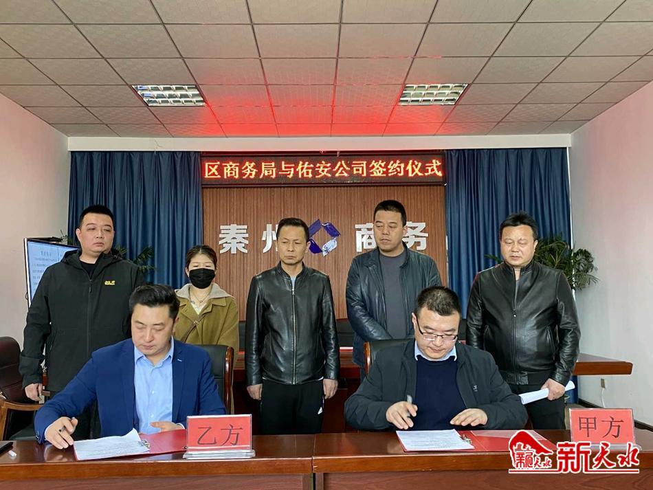 新天水訊【通訊員 趙雅琪】3月13日,秦州區(qū)商務(wù)局與天水佑安酒店有限公司舉行洽談會暨項目簽約儀式。