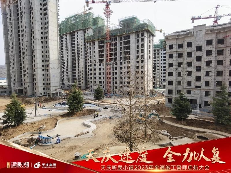 竇愈強先生在致辭中指出,2023年作為天慶聽泉小鎮(zhèn)品質(zhì)兌現(xiàn)年度,項目施工進入到新的階段,計劃4月實體樣板間對外開放、6月實景園林開放、年終整盤實現(xiàn)搶工期、保品質(zhì)、防風險,達到預(yù)交付建設(shè)標準。竇總要求全體員工、各施工單位、監(jiān)理單位繼續(xù)堅守天慶匠心打磨產(chǎn)品,以更強的執(zhí)行力去推動施工建設(shè)等,全力以赴實現(xiàn)天慶聽泉小鎮(zhèn)項目的美好兌現(xiàn)。