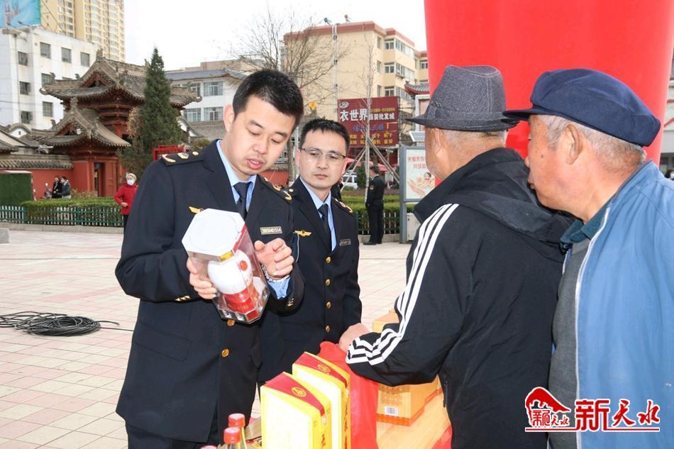 新天水訊【通訊員付蕓蕓 邵瑤】3月15日,秦安縣市場(chǎng)監(jiān)管局聯(lián)合綜合執(zhí)法局、公安局、工信局、煙草專賣(mài)局等單位,開(kāi)展“3.15國(guó)際消費(fèi)者權(quán)益日”宣傳活動(dòng),提高廣大消費(fèi)者維權(quán)意識(shí),營(yíng)造良好的消費(fèi)維權(quán)環(huán)境。