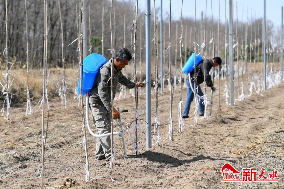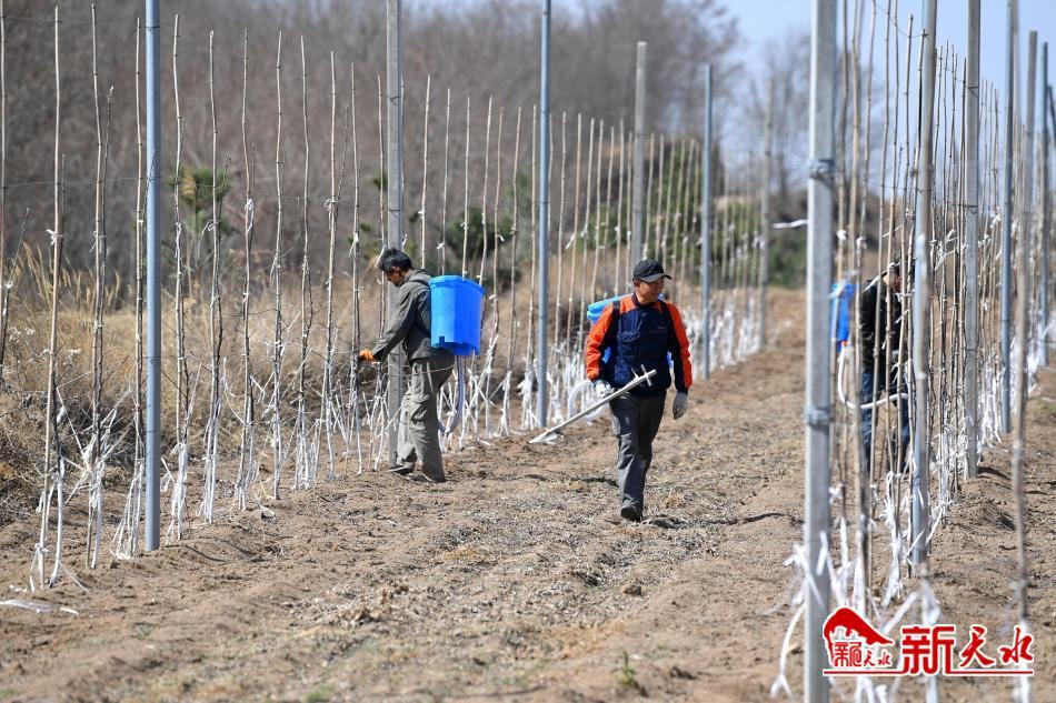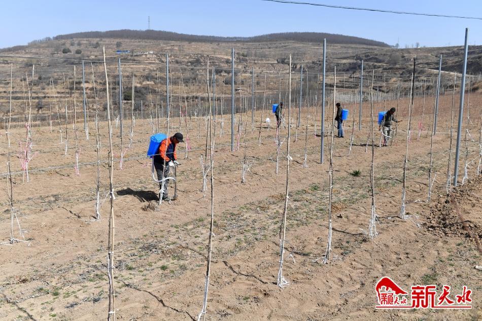 3月19日,農(nóng)民正在清水縣金集鎮(zhèn)蘋(píng)果矮砧密植栽培示范基地為果樹(shù)施肥。為進(jìn)一步推進(jìn)高質(zhì)量特色農(nóng)業(yè)產(chǎn)業(yè)發(fā)展,加快果品產(chǎn)業(yè)迭代轉(zhuǎn)型升級(jí)步伐,金集鎮(zhèn)全力打造蘋(píng)果矮砧密植栽培示范基地。據(jù)悉,該鎮(zhèn)今年計(jì)劃發(fā)展蘋(píng)果矮砧密植栽培120畝,以形成果樹(shù)及時(shí)換代、新老果園互補(bǔ)、品質(zhì)持續(xù)改善、規(guī)模不斷壯大、效益穩(wěn)步提升的良好發(fā)展格局,進(jìn)一步帶動(dòng)群眾增收致富。