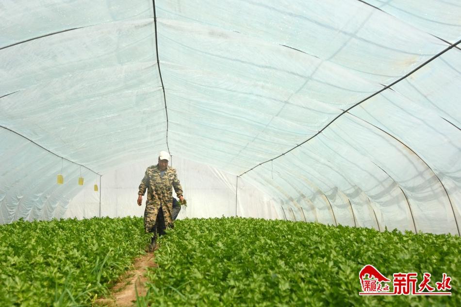 在秦州區(qū)牡丹鎮(zhèn)綠園種植養(yǎng)殖農(nóng)民專業(yè)合作社的蔬菜大棚內(nèi),一壟壟芹菜青翠欲滴、郁郁蔥蔥。