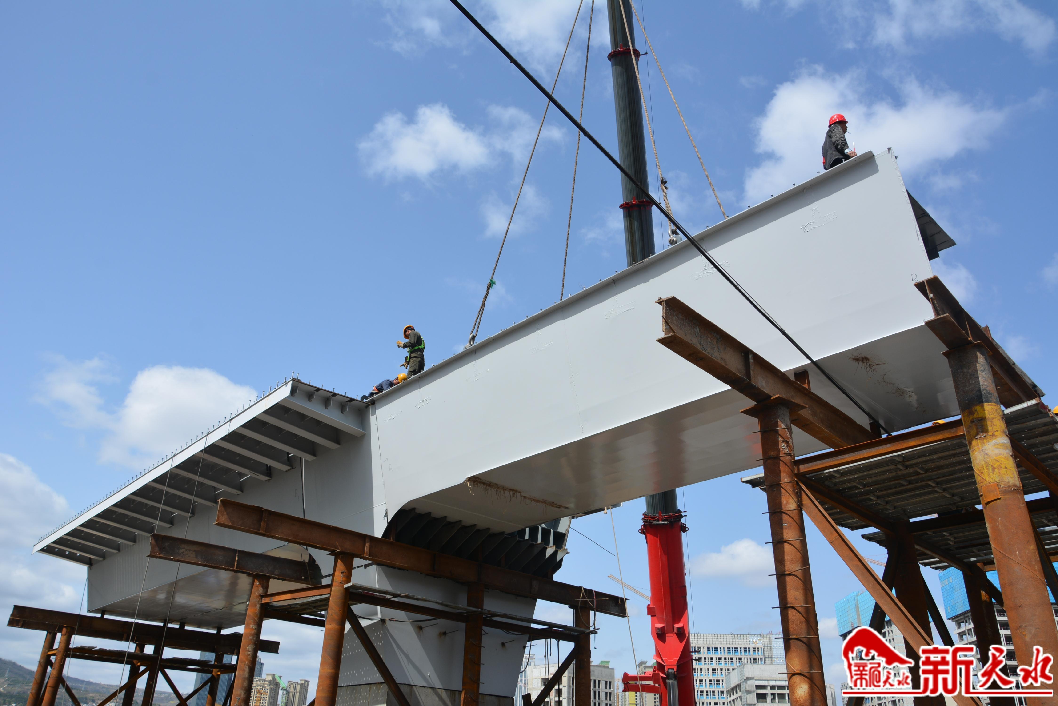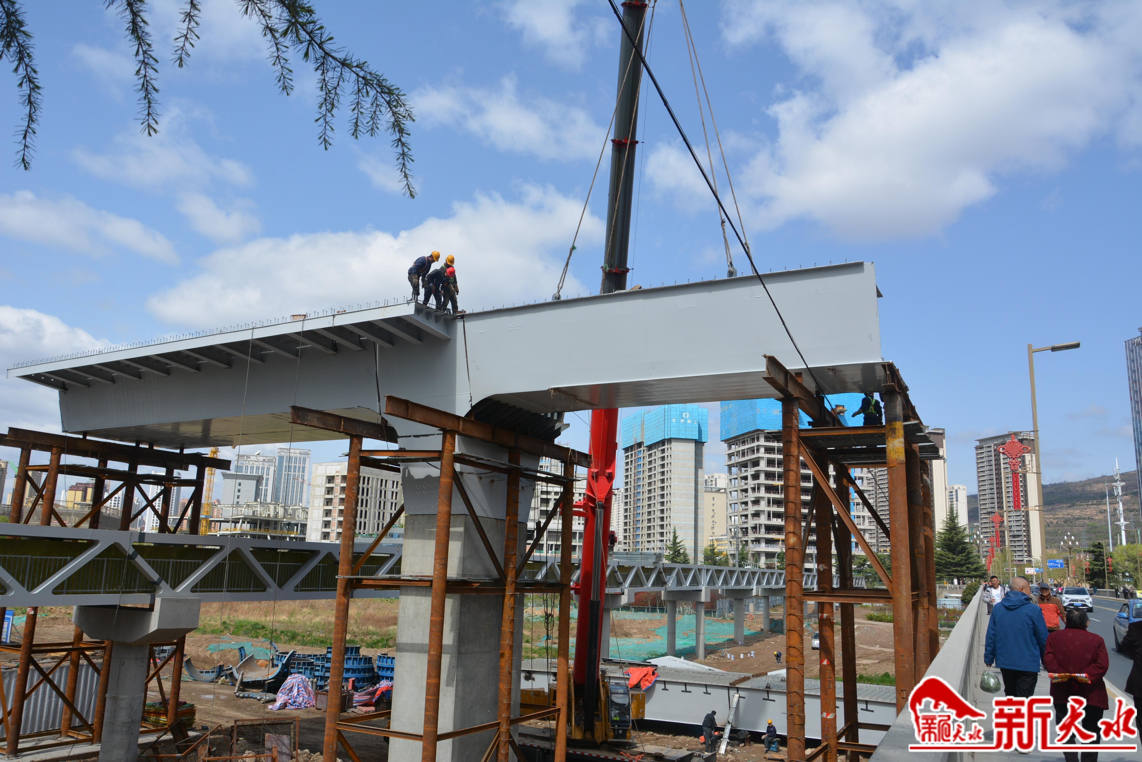 上跨五里鋪橋 天水有軌電車藉河特大橋開始架設(shè)最后一聯(lián)鋼箱梁