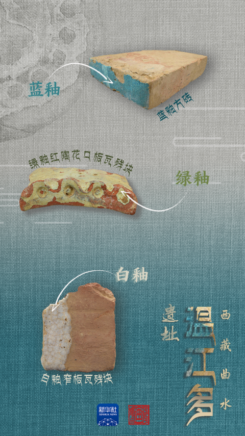 綠釉蓮花瓦當(dāng)、藍(lán)釉方磚、楔形磚