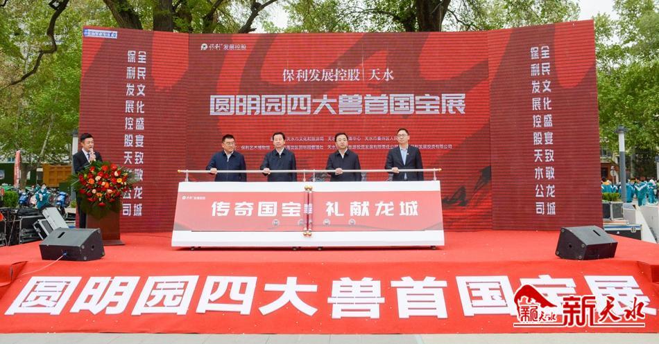 “傳奇國寶 禮獻(xiàn)龍城 ” 。4月28日,由天水市文化和旅游局、天水市融媒體中心、天水市秦州區(qū)人民政府主辦,保利藝術(shù)博物館、北京市海淀區(qū)圓明園管理處、天水市文化旅游投資發(fā)展有限責(zé)任公司、天水保利發(fā)展投資有限公司承辦的圓明園四大獸首國寶展”在天水保利·和光塵樾營銷中心正式開展。曾流失海外140余年的圓明園十二生肖獸首中的牛首、虎首、猴首、豬首四件國寶獸首第一次在天水展出。天水人將在家門口親身體驗(yàn)國寶的文化魅力,感受中華文明的璀璨光輝。