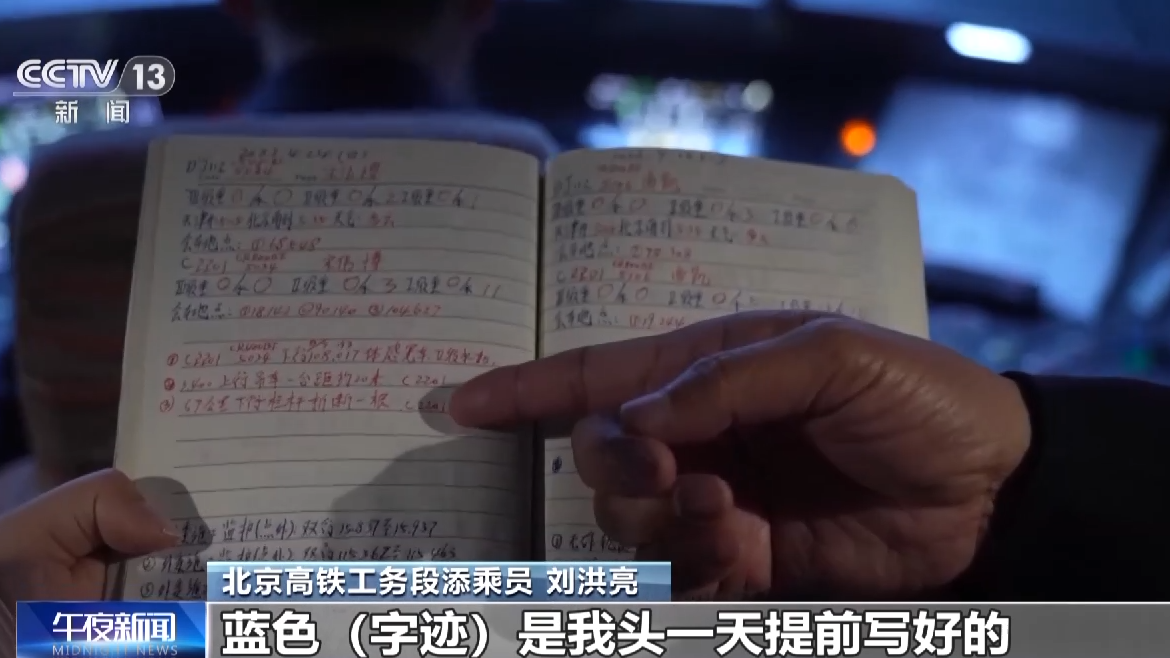 北京高鐵工務(wù)段添乘員 劉洪亮:從干添乘開始記,有38本了。藍(lán)色字跡是我頭一天提前寫好的,紅色字跡是當(dāng)天臨時(shí)根據(jù)情況,然后進(jìn)行的填寫,這樣可以一目了然。