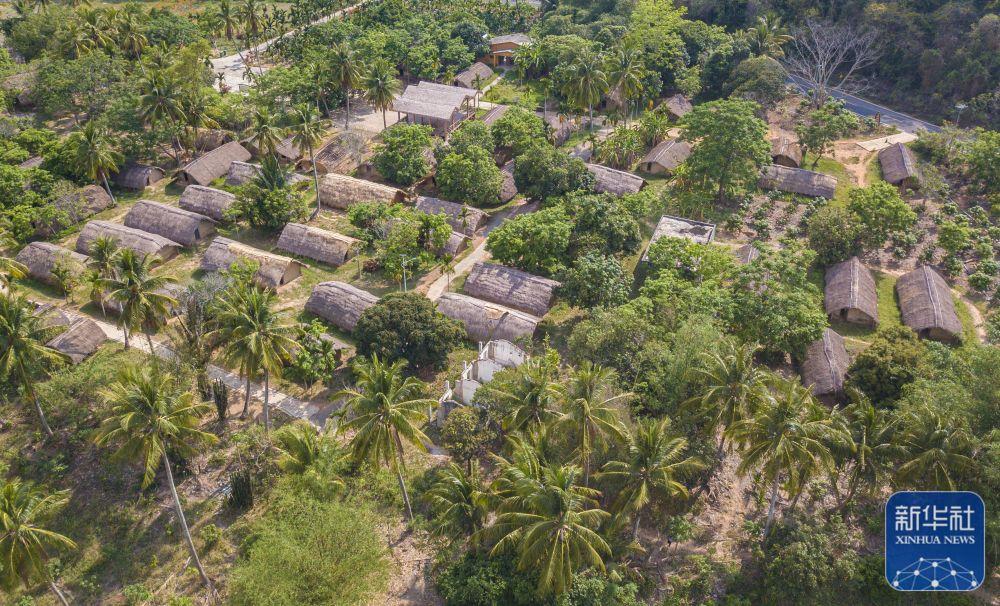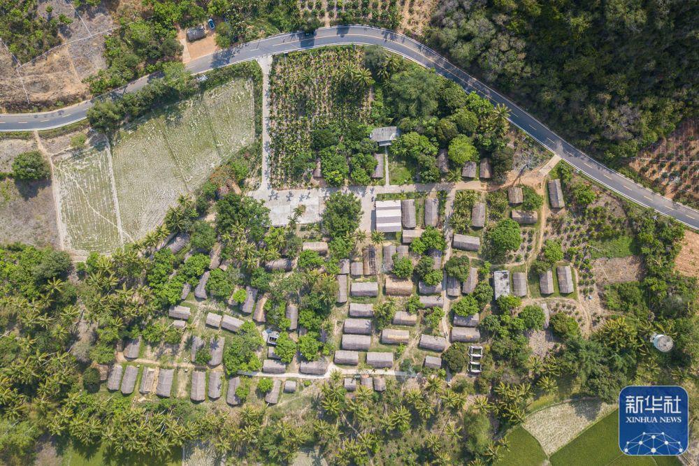 ↑4月28日在海南省東方市白查村拍攝的黎族船型屋(無(wú)人機(jī)照片)。