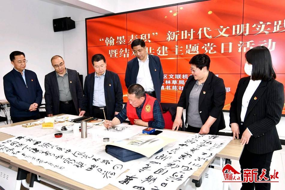 新天水訊【特約通訊員 竇耀輝】5月5日,麥積區(qū)文聯(lián)機(jī)關(guān)黨支部、區(qū)林草局機(jī)關(guān)黨支部、橋南街道書(shū)苑社區(qū)第二黨支部聯(lián)合開(kāi)展“翰墨麥積”新時(shí)代文明實(shí)踐暨結(jié)對(duì)共建系列活動(dòng),積極探索開(kāi)創(chuàng)黨建共建新模式,以互促共贏為目標(biāo),將結(jié)對(duì)共建與新時(shí)代文明實(shí)踐活動(dòng)深度融合,做到了規(guī)定動(dòng)作“不走樣”、自選動(dòng)作“有創(chuàng)新”,進(jìn)一步豐富活動(dòng)載體,形成了“資源共享、優(yōu)勢(shì)互補(bǔ)、共贏發(fā)展”的新格局。