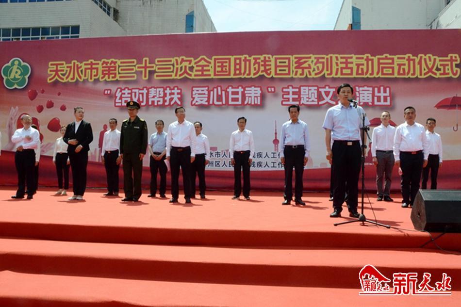 新天水訊【記者王琴】5月19日,天水市第33次全國助殘日系列活動啟動儀式暨“結(jié)對幫扶·愛心甘肅”主題文藝演出在龍城廣場舉行。市委副書記楊曉鋒出席儀式并宣布活動啟動。