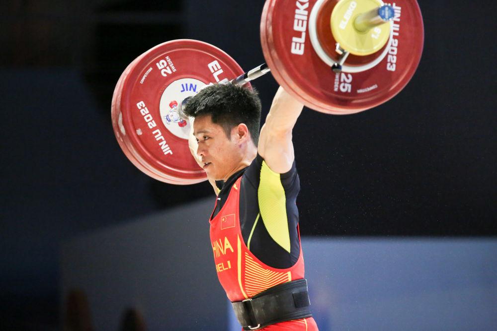 5月6日,李發(fā)彬在亞洲舉重錦標(biāo)賽男子61公斤級比賽中。新華社記者 王益亮 攝