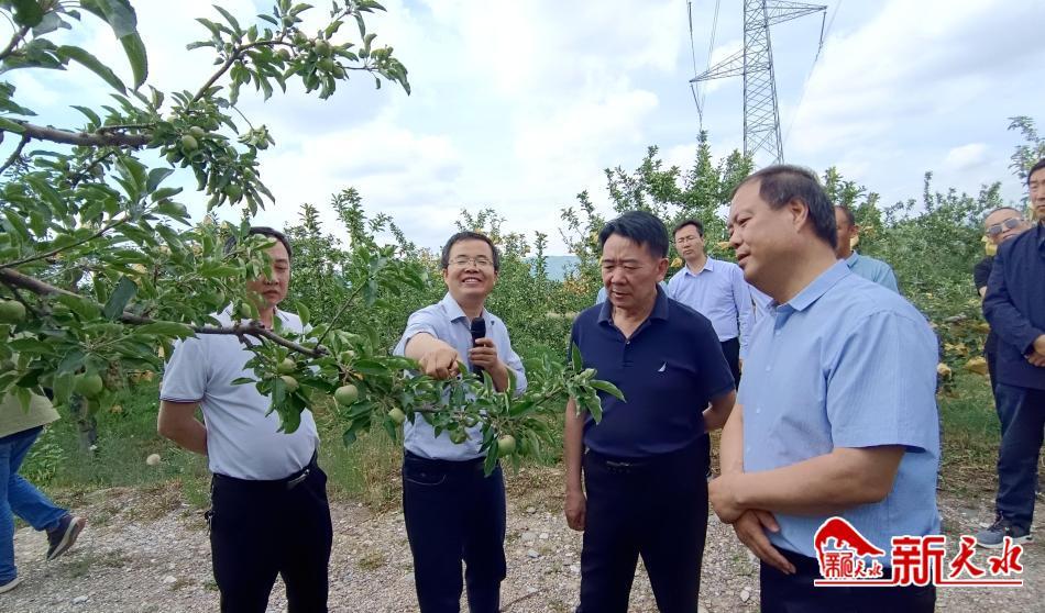 新天水訊【記者張文都】6月15日,甘肅省農(nóng)科院院長馬忠明一行來到天水國家農(nóng)業(yè)科技園區(qū)九龍山蘋果基地,觀摩考察“山地果園高效栽培模式建立與綠色提質(zhì)增效技術(shù)集成應(yīng)用”項目實施進(jìn)展情況,并為我市推進(jìn)林果種植結(jié)構(gòu)調(diào)整、樹種優(yōu)化及農(nóng)業(yè)科技協(xié)同創(chuàng)新等提出指導(dǎo)性意見和建議。