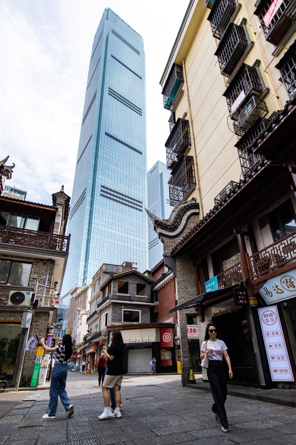 6月10日,游客長(zhǎng)沙市芙蓉區(qū)白果園街區(qū)游玩。新華社記者陳思汗攝