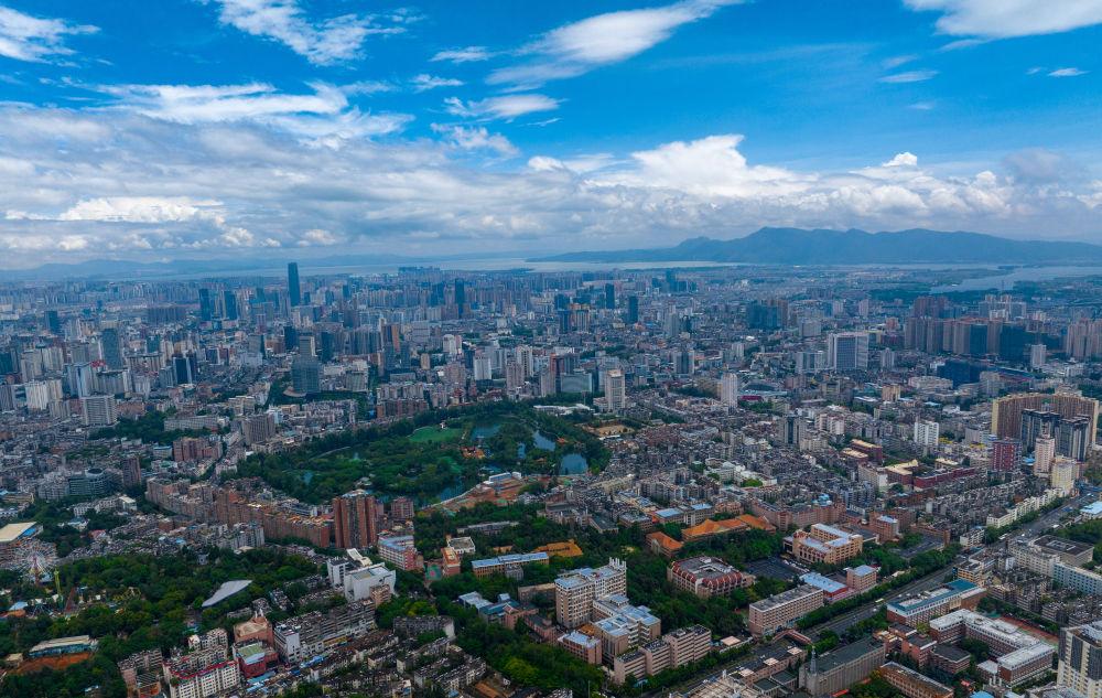 空中俯瞰雨后的昆明城區(qū)(無人機(jī)照片,6月15日攝)。新華社記者江文耀 攝