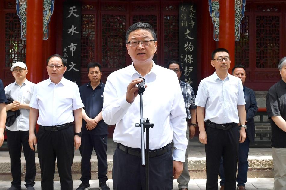 董小平在致辭中表示,全市文學藝術工作者要以這次展覽為契機,圍繞人文始祖一畫開天、肇啟文明等主題,創(chuàng)作出更多的文藝精品,讓海內(nèi)外中華兒女都能真切、形象地感受伏羲文化魅力,努力把博大精深、亙古常新的伏羲文化,轉化為獨一無二、無可替代的文化感召力和民族自豪感,為全面建設社會主義現(xiàn)代化國家,實現(xiàn)中華民族偉大復興凝聚強大精神力量。