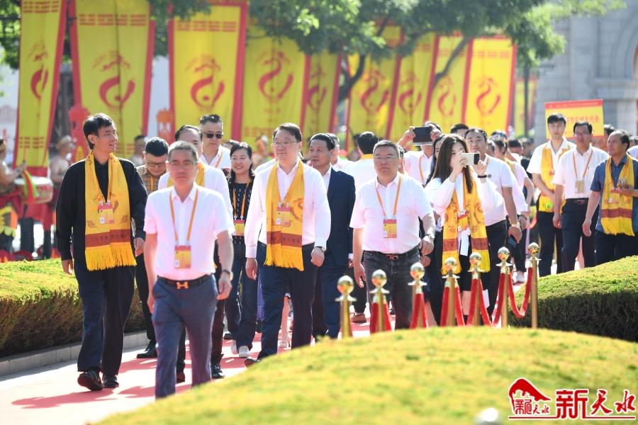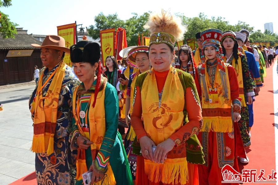 花團(tuán)錦簇,龍旗飄揚(yáng)。遠(yuǎn)道而來(lái)的海內(nèi)外賓朋,身披黃色綬帶,懷著虔誠(chéng)恭敬的心情,緩步走過(guò)伏羲廣場(chǎng),靜靜佇立,共同迎接盛典。