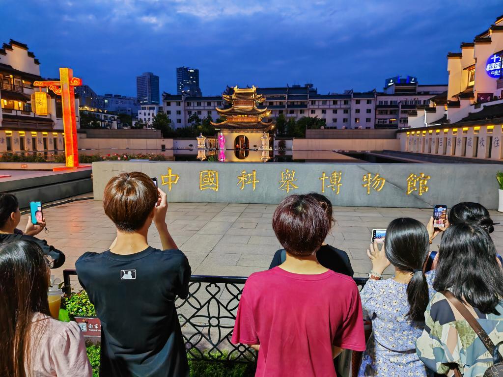 青年游客觀看中國科舉博物館燈光演出。 新華社記者陳席元 攝