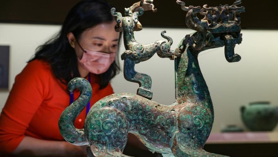 觀眾可以從“實證中國”一窺其與“宅茲中國”呈現(xiàn)的夏商周文明之間的呼應與聯(lián)系。兩場展覽從黃河中下游文明到長江下游文明,佐證著中華文明的統(tǒng)一性與包容性,也彰顯中華文明的連續(xù)性。