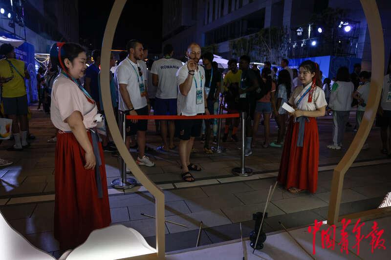 大運(yùn)村運(yùn)動(dòng)員暢游中國(guó)風(fēng)文化集市