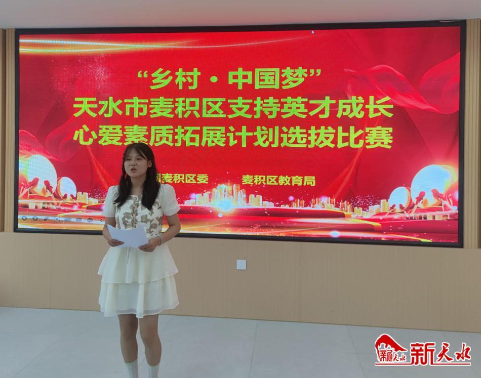 新天水訊【記者洪野】7月30日,麥積區(qū)首屆支持英才成長(zhǎng)“鄉(xiāng)村?中國(guó)夢(mèng)”心愛(ài)素質(zhì)拓展計(jì)劃選拔賽在麥積區(qū)新時(shí)代文明實(shí)踐中心舉行。