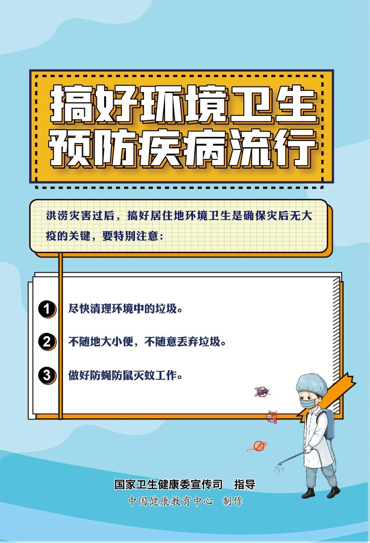 近日多地出現(xiàn)洪澇災害,提醒廣大公眾洪澇災害期間做好飲食衛(wèi)生,保持衛(wèi)生習慣,災害過后注意環(huán)境衛(wèi)生,預防疾病發(fā)生。