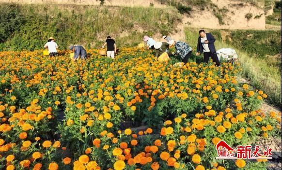 走進隴城鎮(zhèn)上袁村西山萬壽菊種植基地,一朵朵菊花吐露花蕊、競相開放。村民不停穿梭在金黃色的花海中,忙活著采摘菊花。