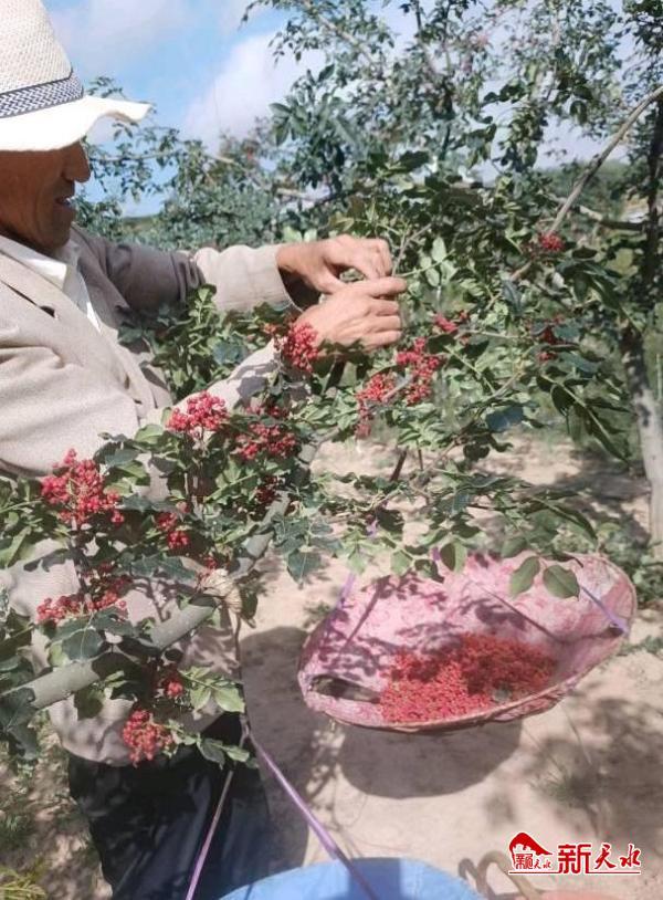 新天水訊 一抹紅顏經(jīng)天地,串串花椒掛樹(shù)梢。今年,甘谷縣西坪鎮(zhèn)的萬(wàn)畝花椒迎來(lái)了大豐收,走進(jìn)上硬王村,只見(jiàn)花椒樹(shù)枝繁葉茂,椒香撲鼻,頗具詩(shī)景畫(huà)意,一幅豐收的景象映入眼簾。