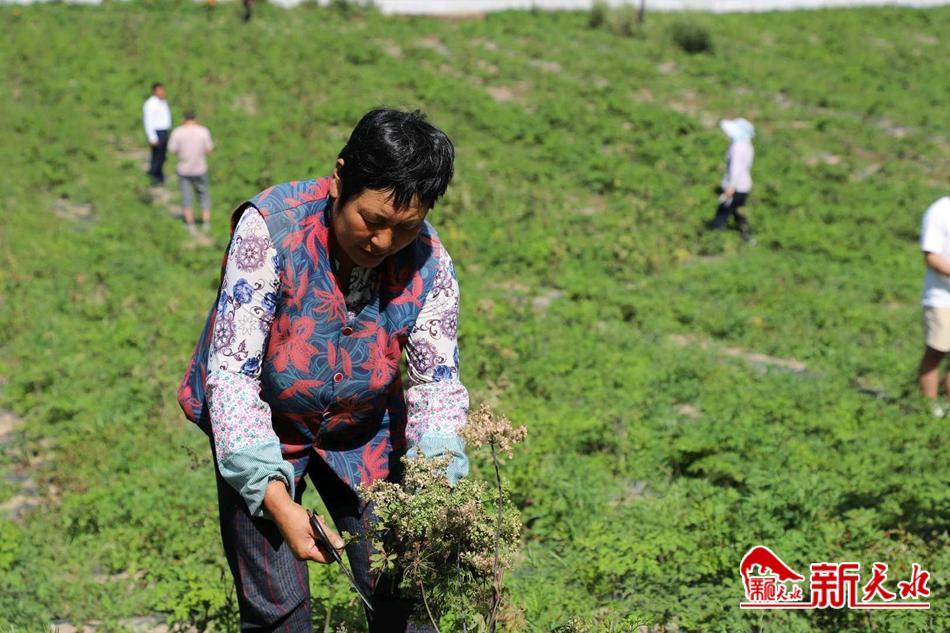 初秋,武山溫泉金風(fēng)送爽,天高云淡。沿著李子溝前行,在雙碌村中藥材種植示范基地,500畝當(dāng)歸長(zhǎng)勢(shì)茂盛,基地負(fù)責(zé)人正組織群眾采收冒出頭的藥籽,陣陣藥香味彌漫山谷。