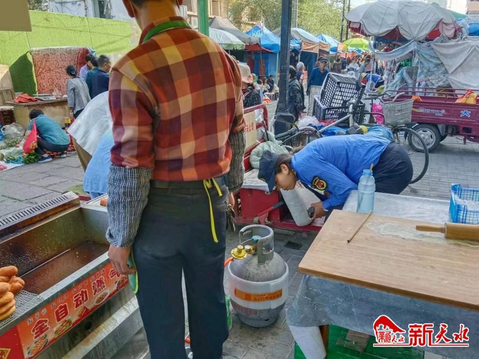 新天水訊【通訊員靳雪萍】8月29日,秦州區(qū)執(zhí)法局玉泉中隊對轄區(qū)內(nèi)各早點市場、攤點的液化氣罐使用情況開展集中檢查,并向經(jīng)營者普及燃氣安全使用知識,保障商戶用氣安全,筑牢安全“防火墻”。