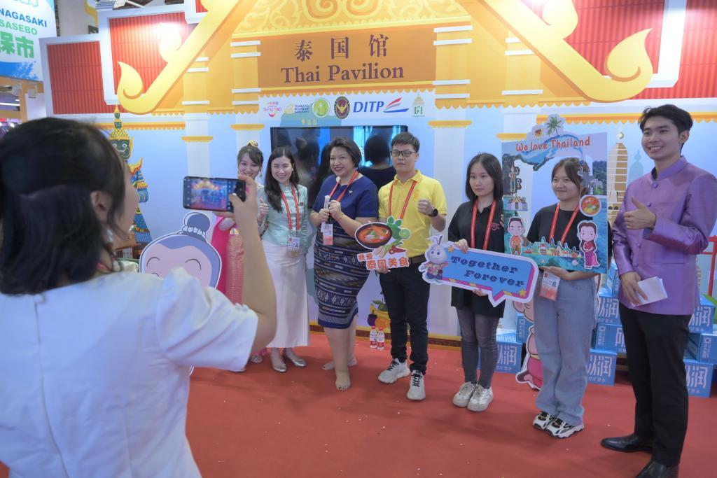 9月8日,中外嘉賓在泰國展區(qū)前合影。新華社記者 林善傳 攝
