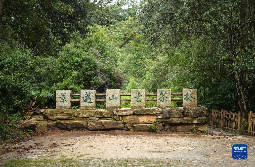 在景邁大寨古茶林入口處矗立有“景邁山古茶林”字樣的標(biāo)識(8月29日攝)。新華社記者 李賀 攝