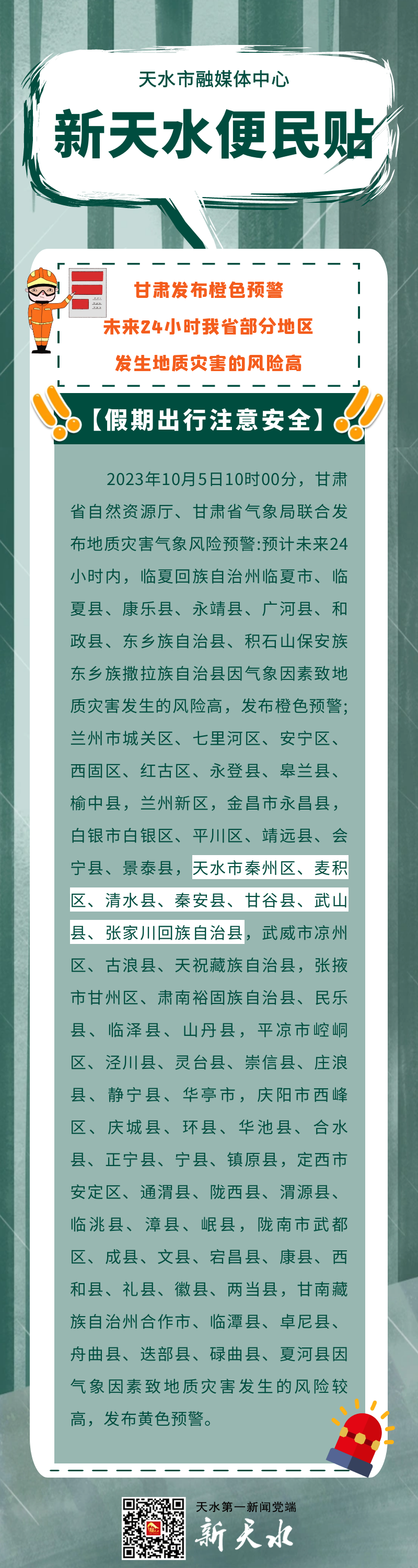 【新天水便民貼】@天水人 甘肅發(fā)布黃色預(yù)警 出行請(qǐng)注意安全