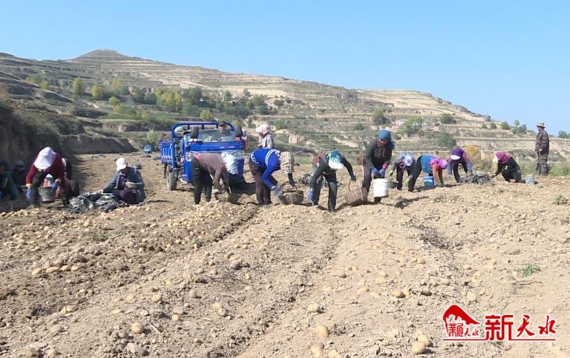 這兩天,秦安縣王鋪鎮(zhèn)太平嶺流域5000畝馬鈴薯基地迎來(lái)了大豐收,合作社緊抓晴好天氣,利用“機(jī)械+人工”的方式抓緊采收。在現(xiàn)場(chǎng),伴隨著機(jī)器的轟鳴聲,一顆顆馬鈴薯從自動(dòng)起收機(jī)里翻落出來(lái),工人們迅速撿拾,田間地頭一派豐收景象。“我們合作社的5000多畝土豆,畝產(chǎn)2千斤左右,大薯一斤能賣8毛多,小薯一斤能賣6毛錢”。秦安縣王鋪鎮(zhèn)胡芳紅種養(yǎng)殖專業(yè)合作社管理員邵雙勝說(shuō)。